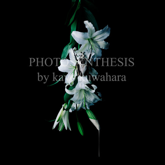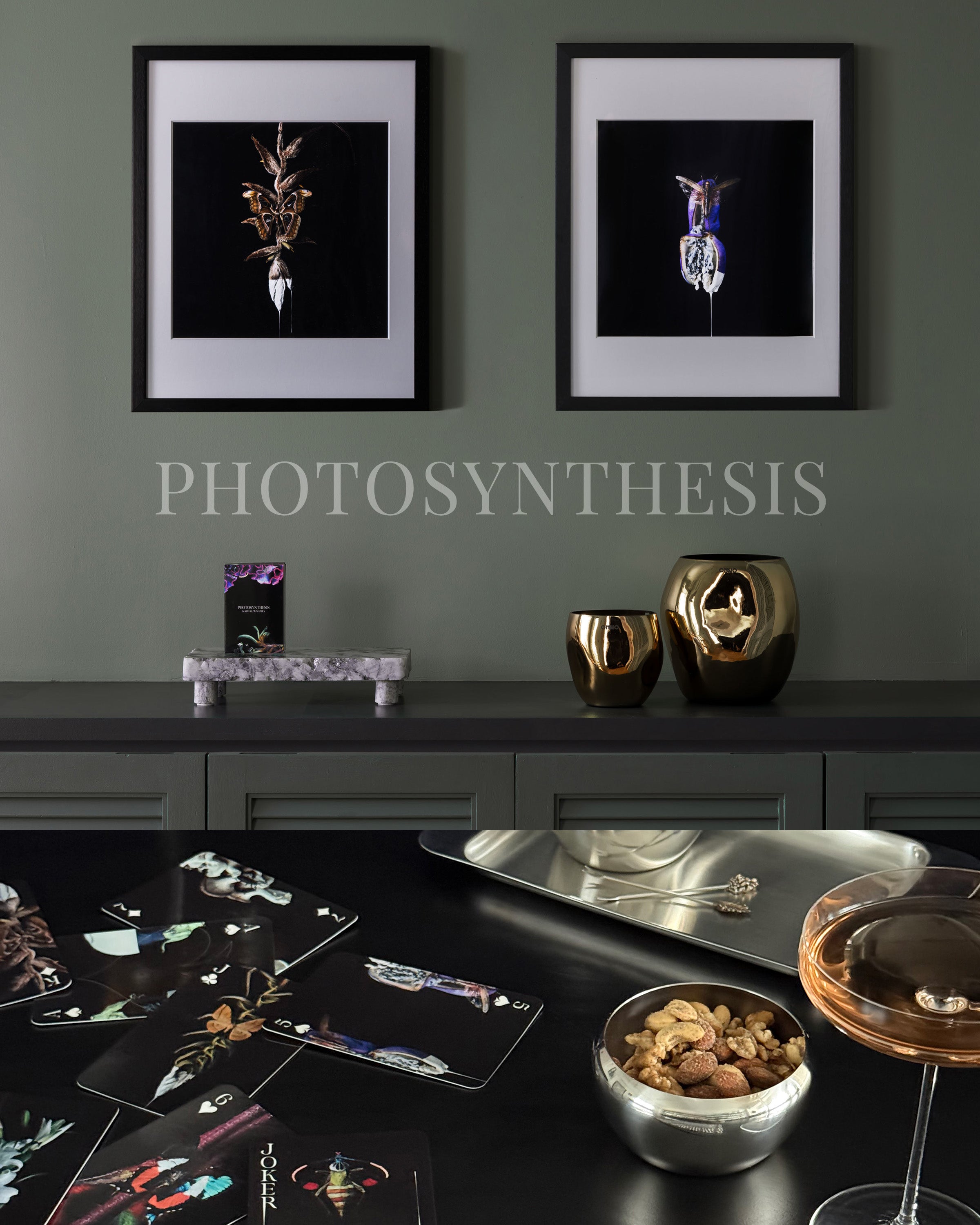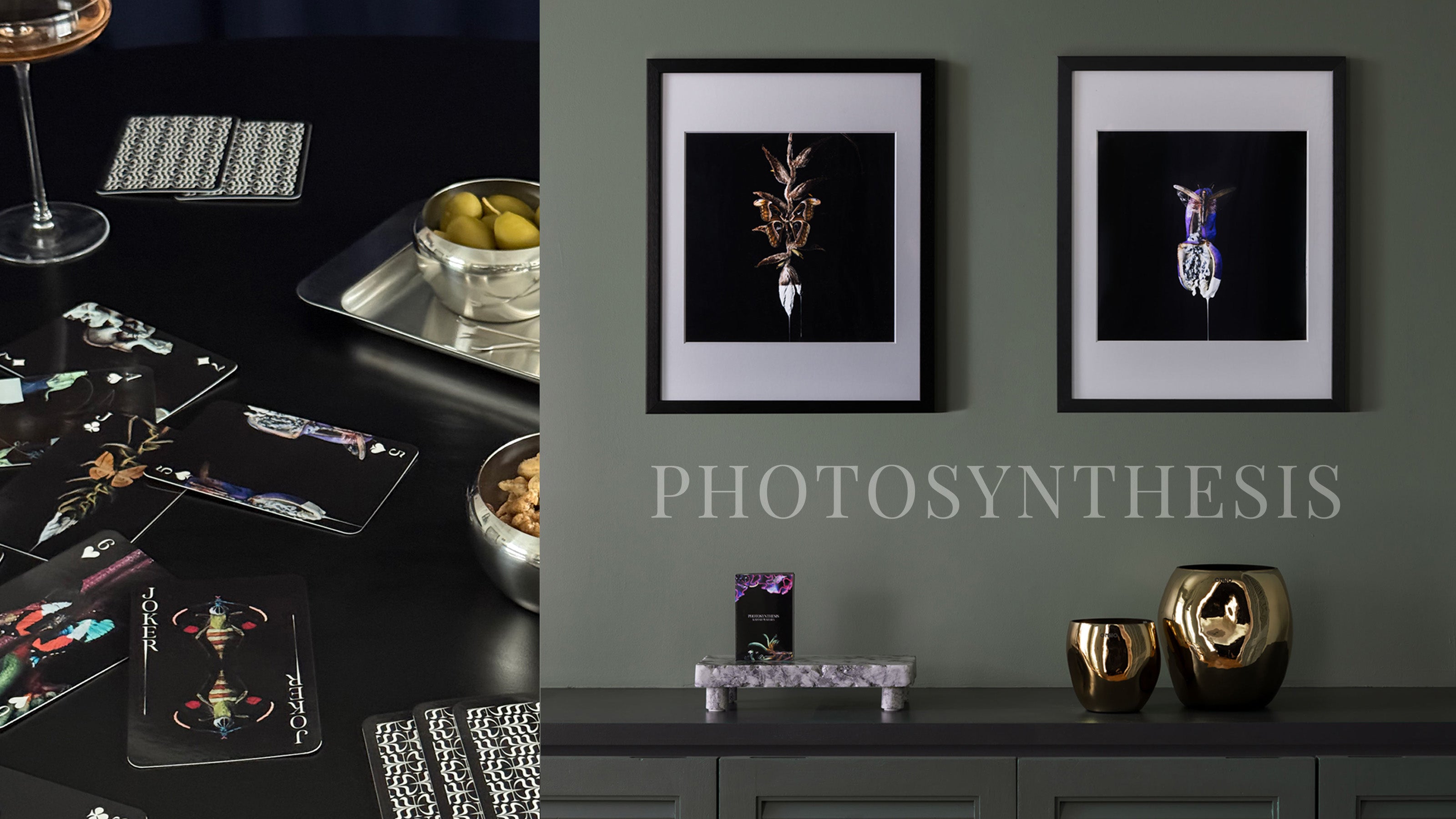 桑原佳代による「PHOTOSYNTHESIS」は、植物と昆虫をモチーフに、 静かに息づく生態系の断片を切り取った作品です。 漆黒の背景に浮かび上がる有機的なフォルムは、 現実と幻想のあわいを行き来しながら、空間に奥行きをもたらします。 3rdpartyでは、それぞれの空間に取り入れやすいよう、 作品のサイズや構成を選びセレクトしています。 壁に掛けるだけで、視線の流れに変化が生まれ、 空間にささやかなリズムが加わります。 また、「PHOTOSYNTHESIS」から派生した 「Playing Cards / NOIR BLOOM Deck」も展開。 作品の世界観を、手の中で楽しむことができるエディションです。