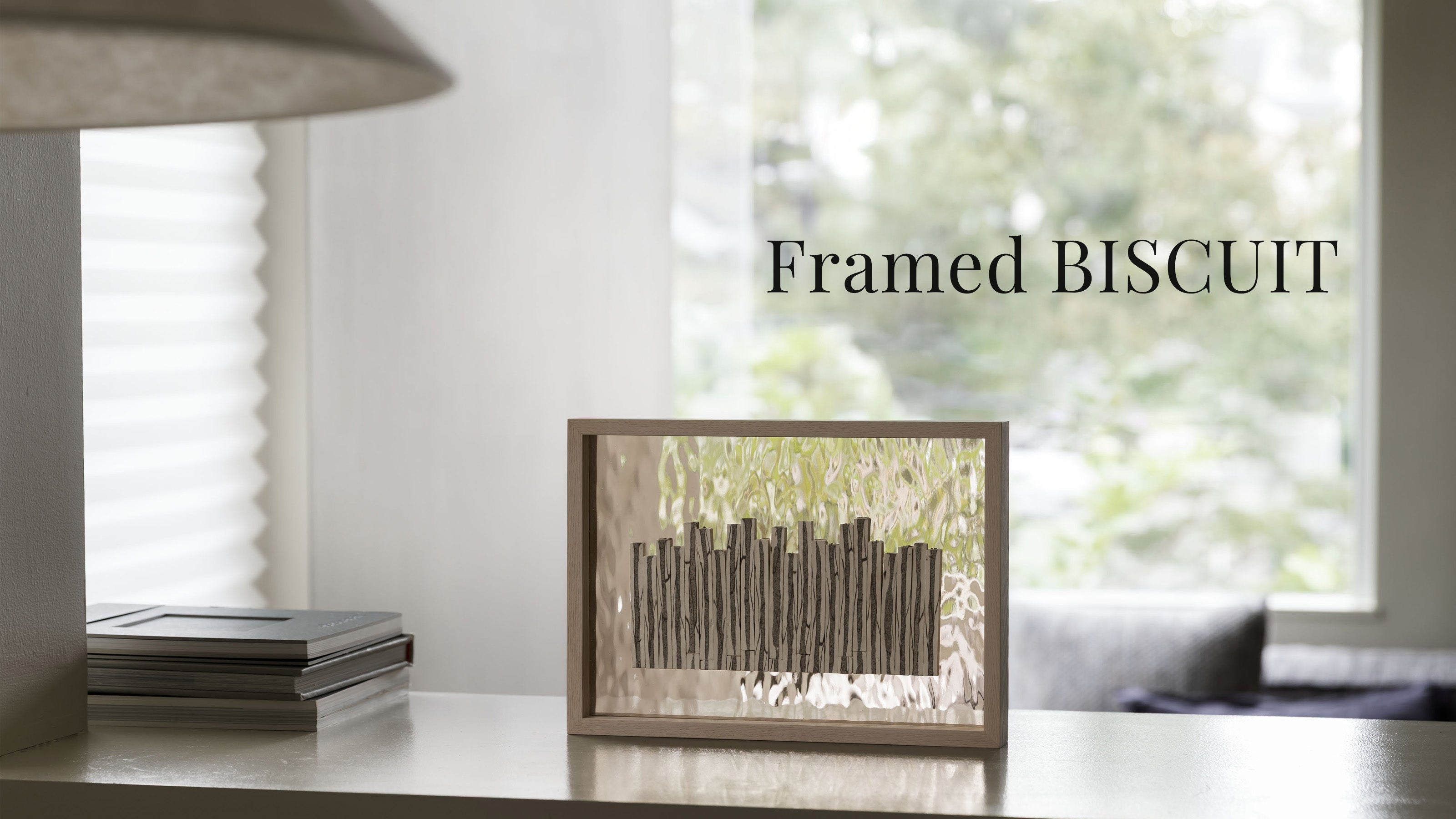 「Framed BISCUIT “VOID”」は、平田タイルで扱う「BISCUIT」シリーズを用い、3rdpartyがデザインを手がけたシリーズです。本来、空間を仕上げるための素材であるタイルを、フレームの中に切り取り、ひとつの要素として再構成しました。余白を設けることで、タイルの質感や揺らぎが際立ち、均一ではない表情が空間に奥行きをもたらします。