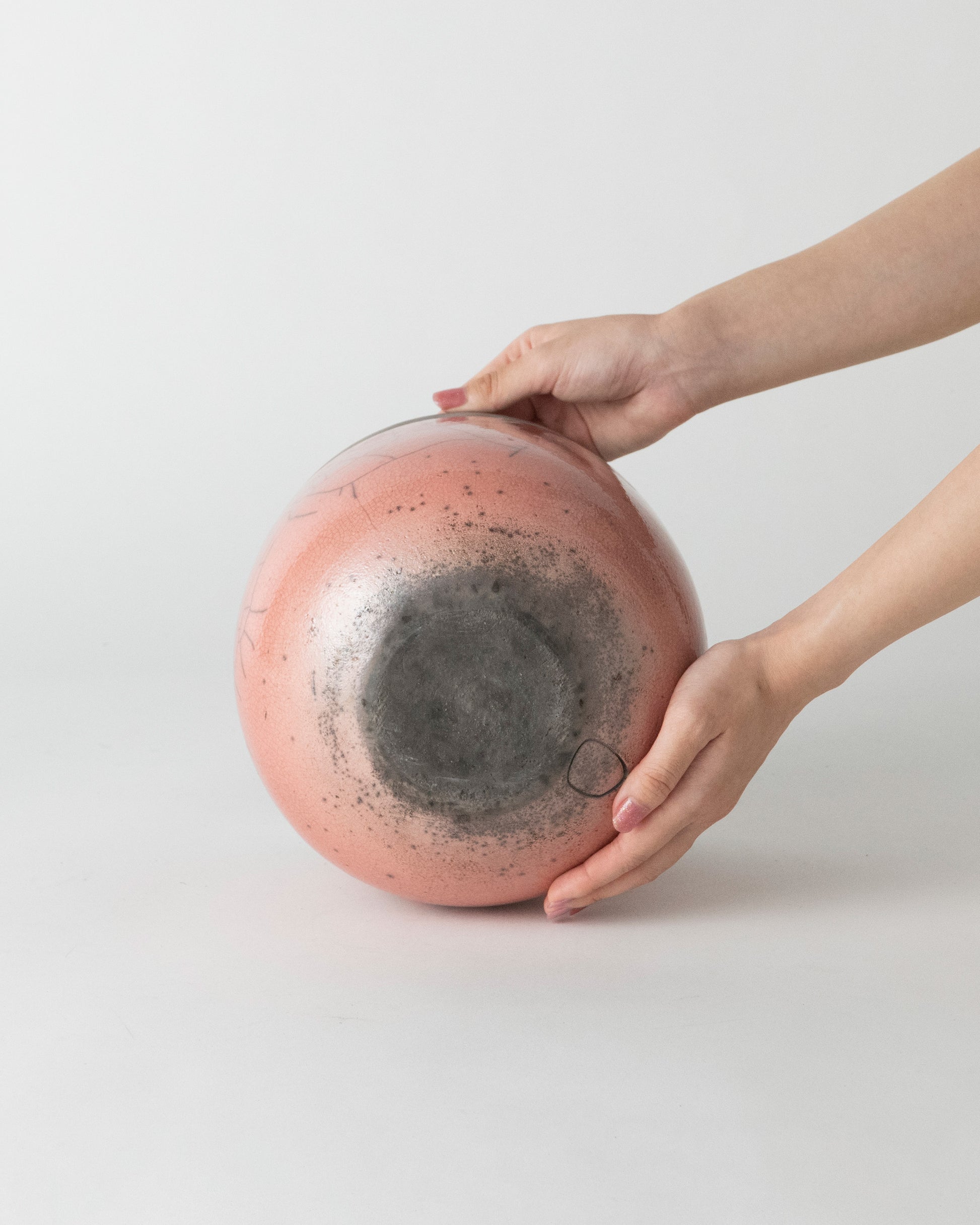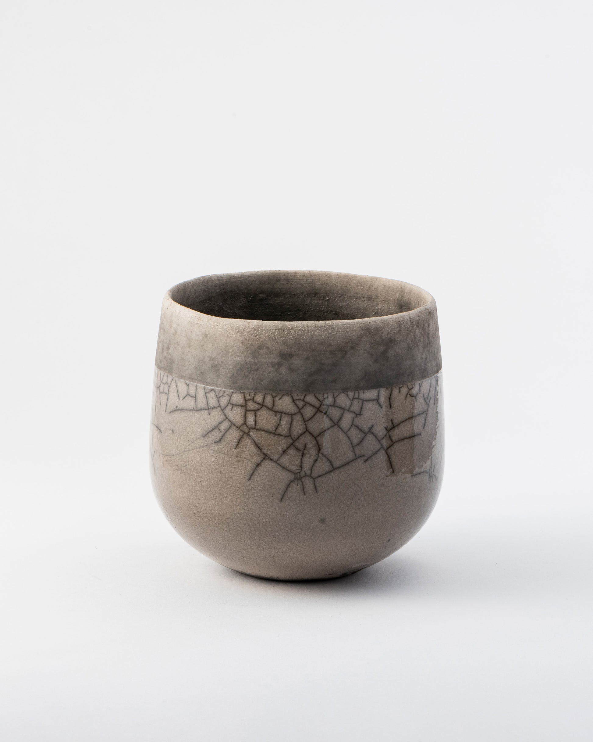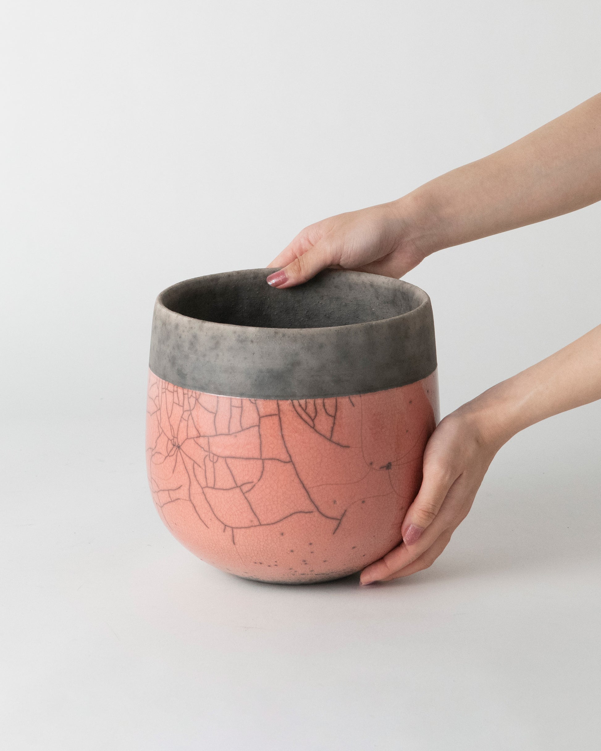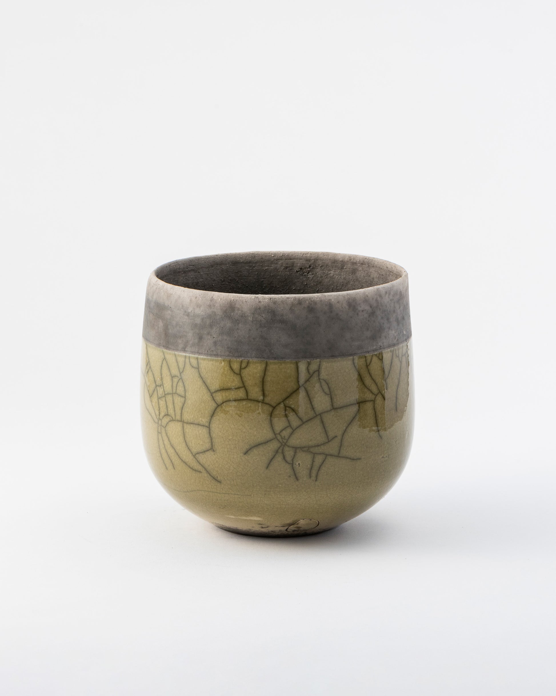 釉薬を施釉した後、オーブンで高温に熱したポットをおがくず の中に入れ急激に冷却し、その温度差によって貫入(ヒビ)を生み出します。自然が作り出す美しい模様は、出来上がるたびに私たちに新たな喜びを与えてくれます。